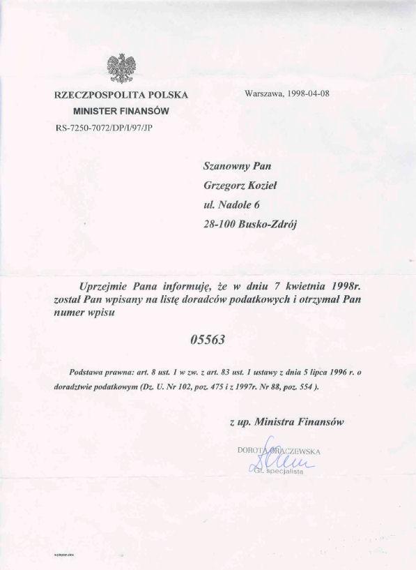 Poniżej znajdą Państwo uprawnienia naszego biura obrachunkowego, które potwierdzają nasze kwalifikacje: licencję Ministra Finansów oraz Krajowej Rady Doradców Podatkowych.